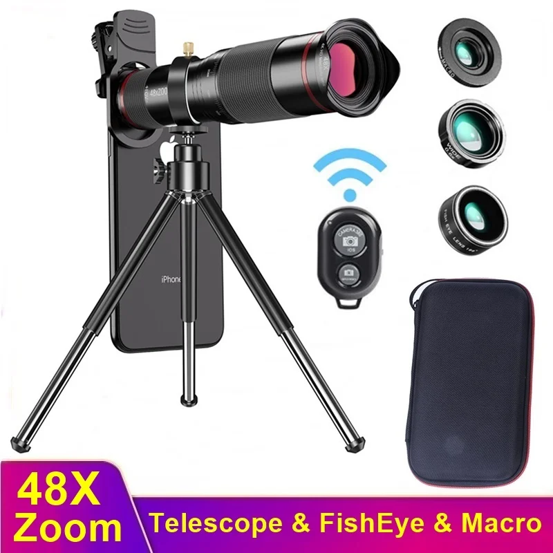 Tongdaytech 48X зум-объектив для телефона, портативная камера, макрообъективы для Iphone 12 11 Pro Max, Samsung Xiaomi, рыбий глаз, объектив для телефона