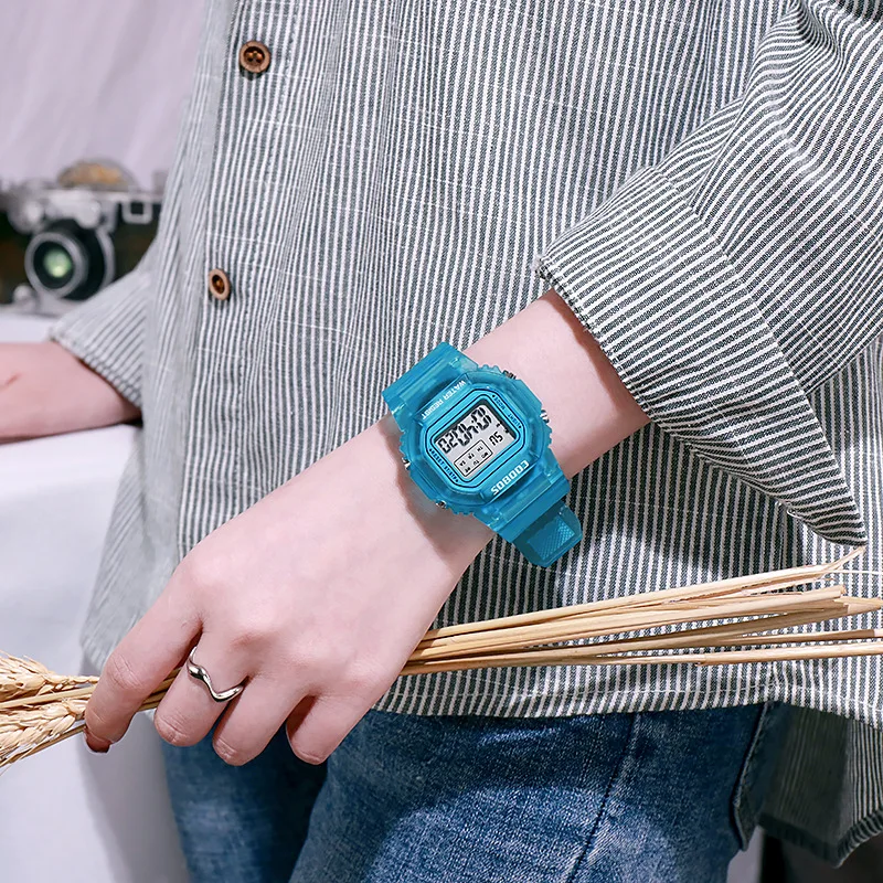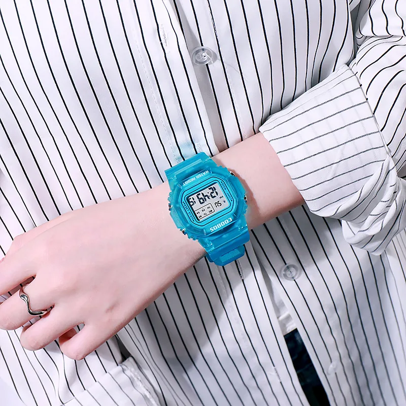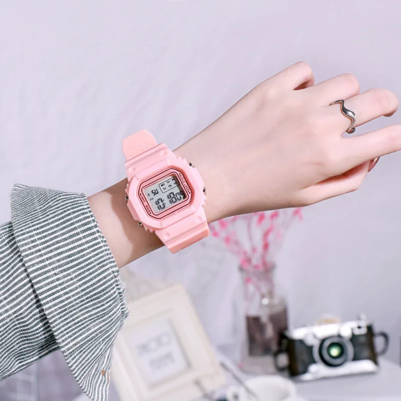 Часы женские, многофункциональные, светодиодные, цифровые, водонепроницаемые, с розовым силиконовым ремешком