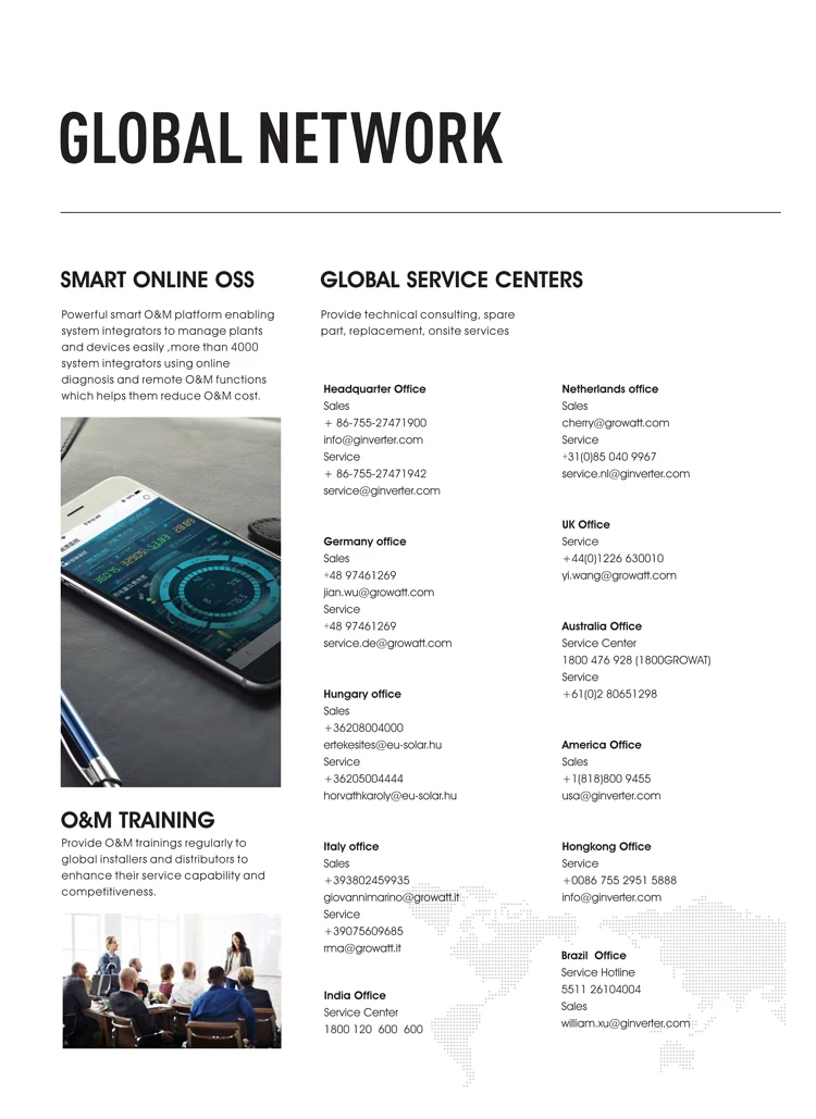 Для проблем с качеством, пожалуйста, предложите код SN и обратитесь к бесплатному сервисному обслуживанию от центра обслуживания Growatt localЕсли в стране покупателя нет местного сервисного центра, замените новый, и покупатель оплачивает доставку на сумму около 180 долларов США