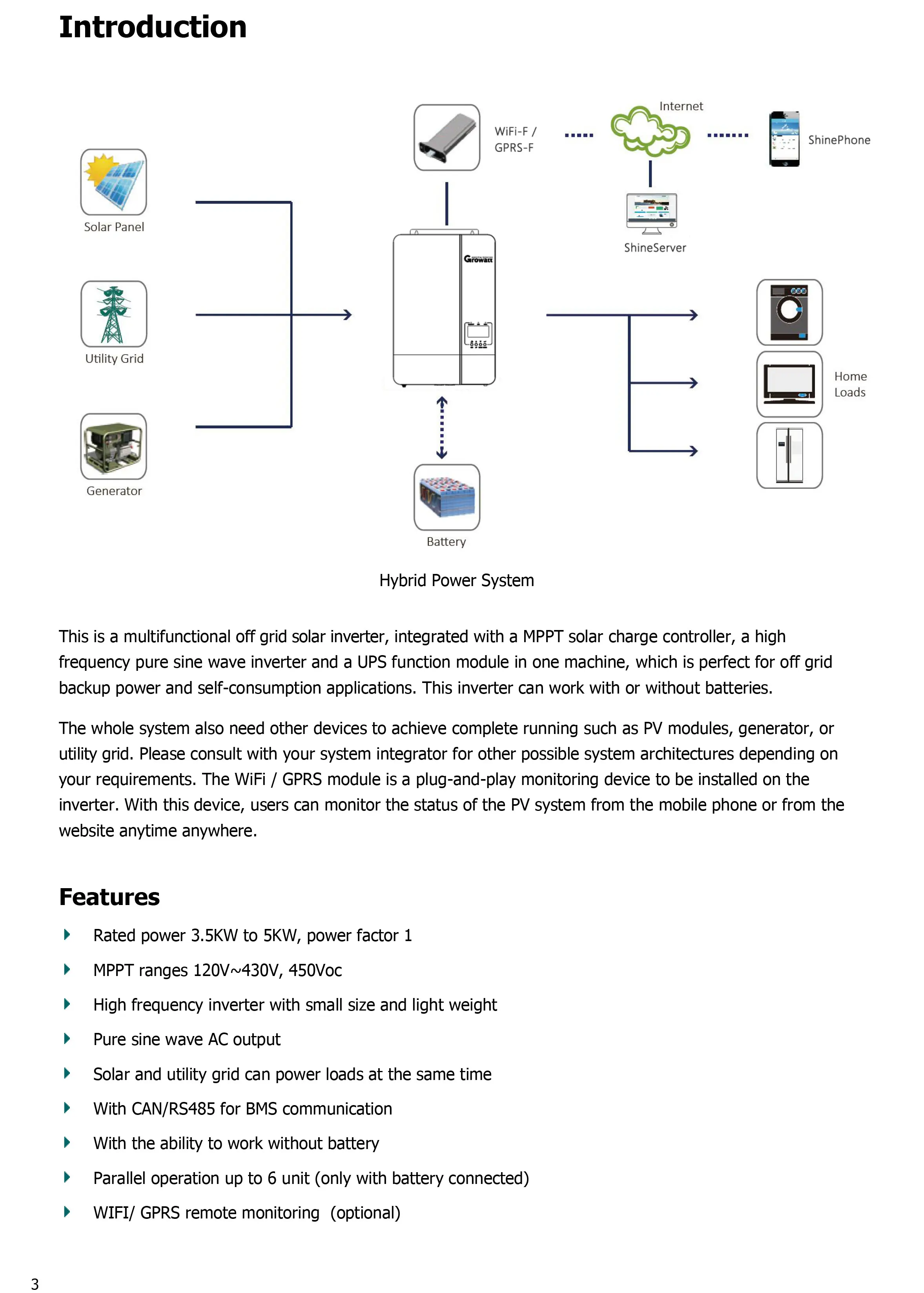 Номинальная емкостьGrowatt Hybrid Inverter 3500W 5000W