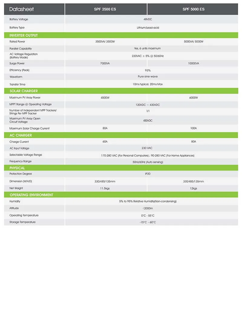 Гарантия: 5 лет SPF3500- 5000 ES 220V
