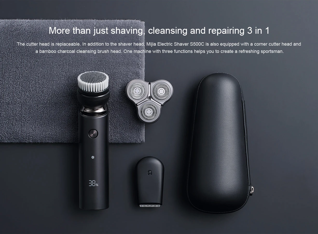 Больше, чем просто бритье, очищение и ремонт 3 в 1Режущая головка заменяется. В дополнение к головке бритвы, Mijia электробритва S500C также оснащена угловой режущей головкой и бамбуковой щеткой для чистки угля. Одна машина с тремя функциями помогает создать освежающего спортсмена.