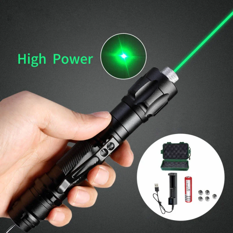 Лазерная указка высокой мощности 303, Перезаряжаемый USB военный горящий факел мощностью 100 мВт, зеленая лазерная ручка, лазерная указка с котом, синий