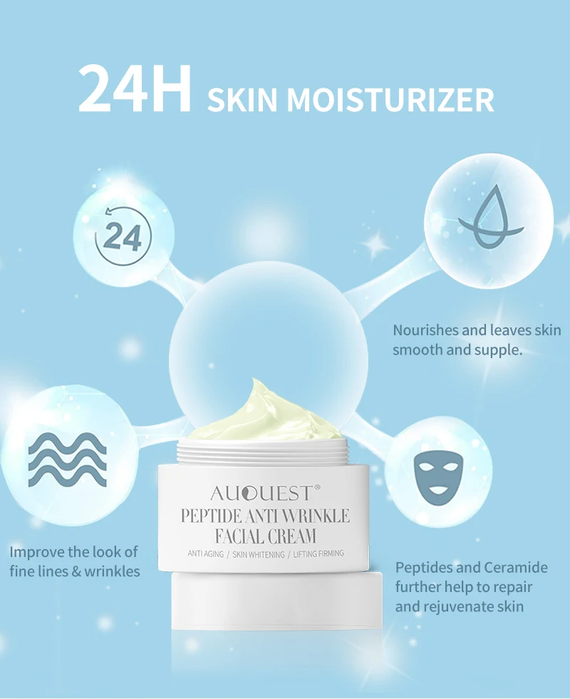 √ Разглаживание морщин для упругой кожи√ Питательный√ Длительное увлажнение Увлажняющий шелк без жирности.Пептид активирует твердую кожу, чтобы противостоять внешнему виду отечности. ГиалуроноваяКислота помогает сбалансировать уровень влажности кожи, оттягивает сухую тусклую кожу.Керамид освещает кожу лица и тускнеет.Укрепляет и увлажняет кожу лица, постепенно восстанавливает молодость.
