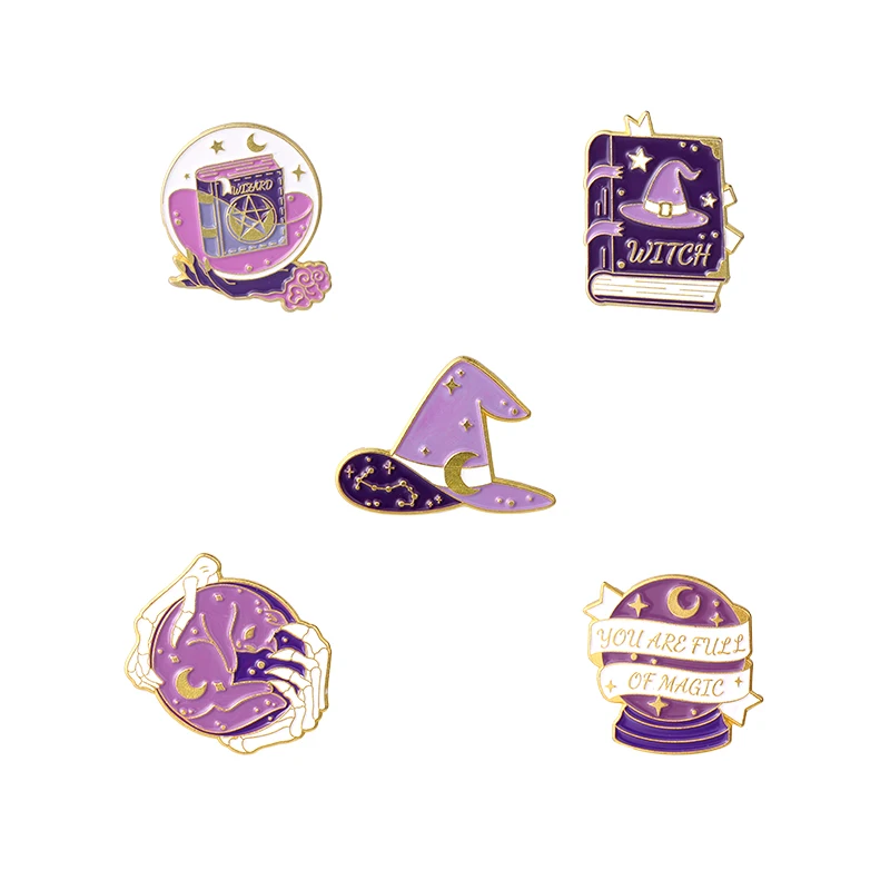 Эмалированная булавка ведьмы кошки фиолетовая Волшебная Шляпа Хрустальная Броши с шариком значки на одежду сумки рюкзак Подарки для женщин мужчин ювелирные изделия