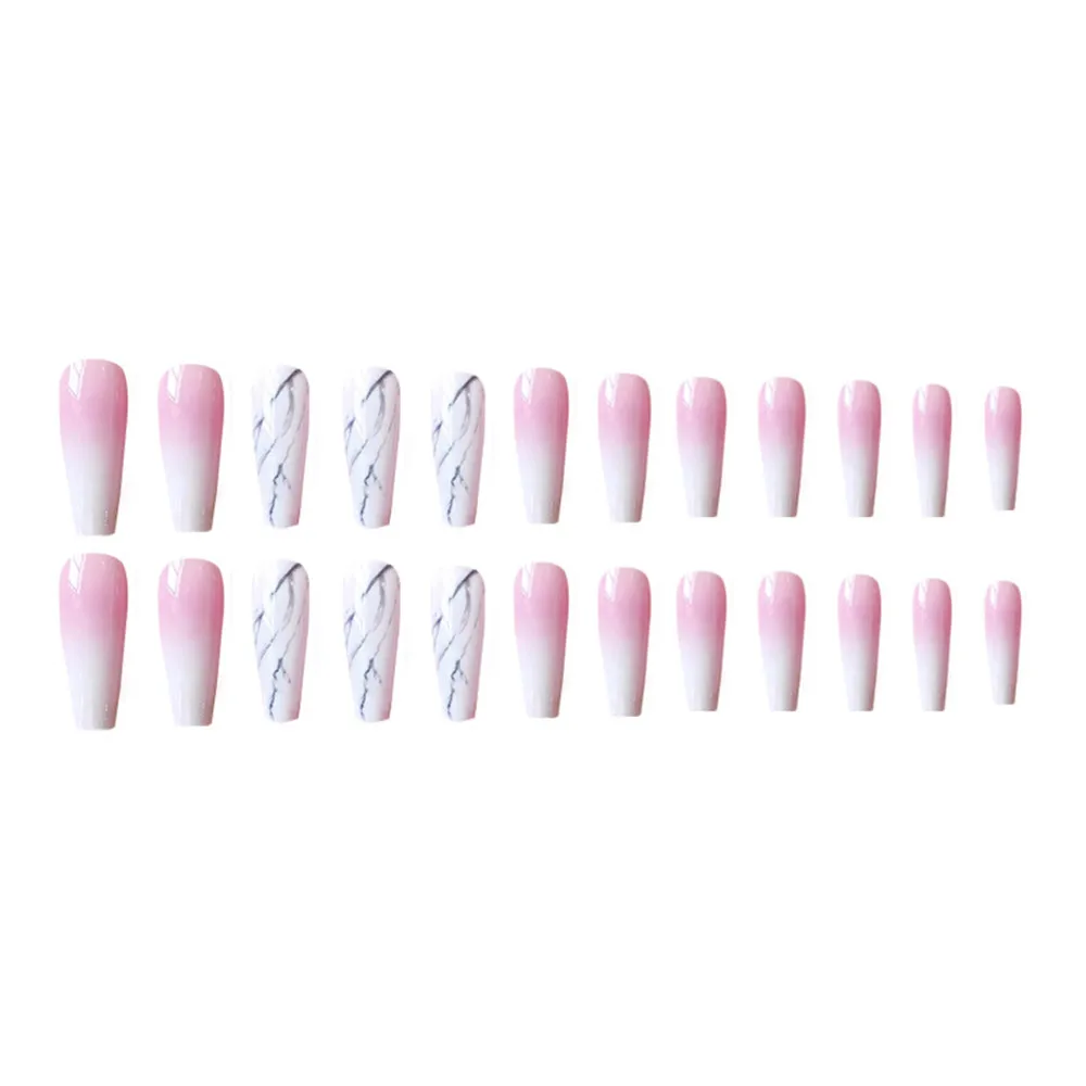 24 шт.кор. градиентные Длинные накладные ногти в гробе съемные балерины маникюрные пластыри накладные ногти с полным покрытием накладные ногти