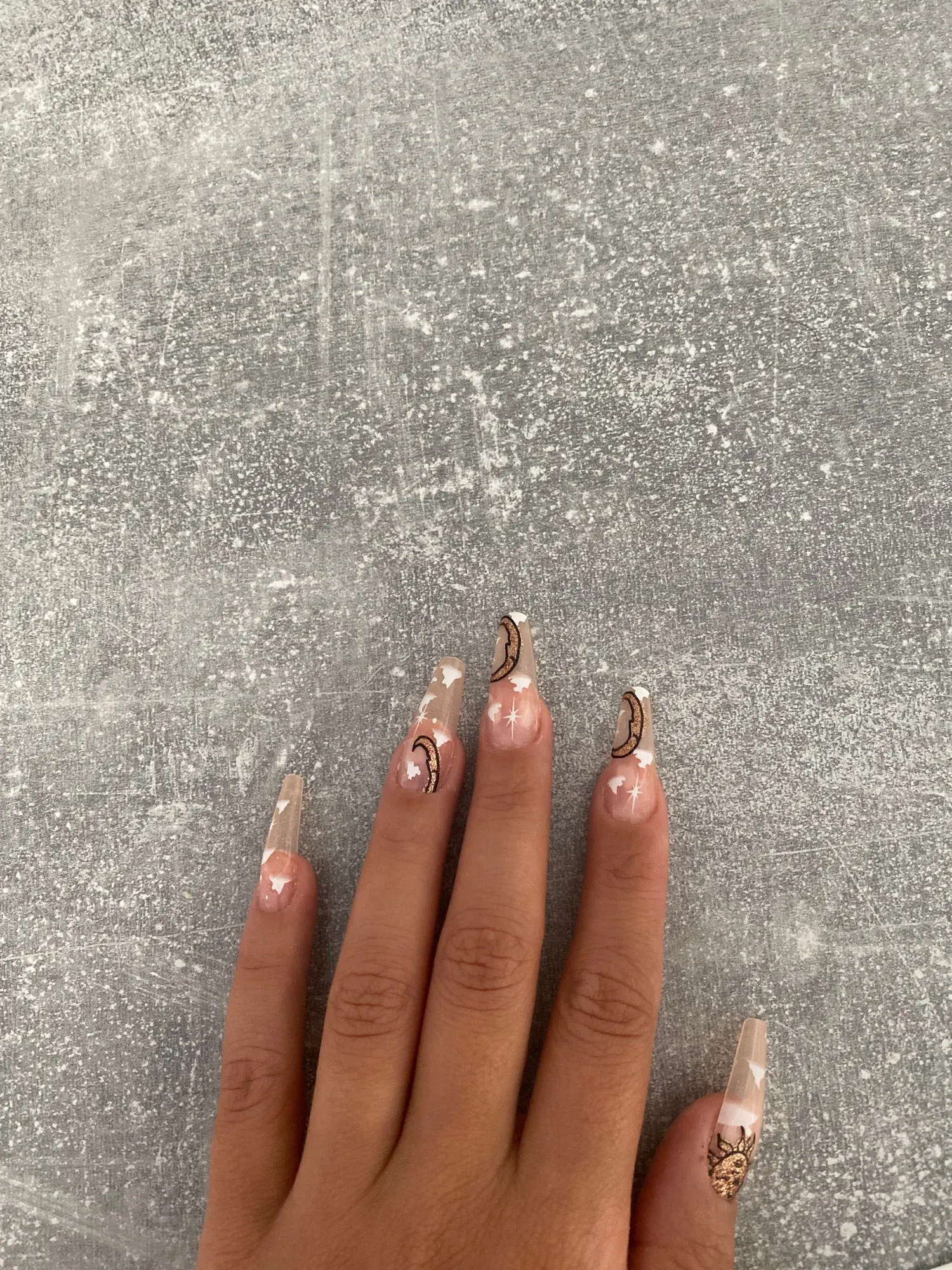 Всего 2 ногтя были украшены орнаментом из 24 штук. 24 штуки позволяют иметь 2 набора зажимов на ногтях. Но я могу носить только один комплект с украшениями, так как второй комплект не имеет дизайна орнамента.