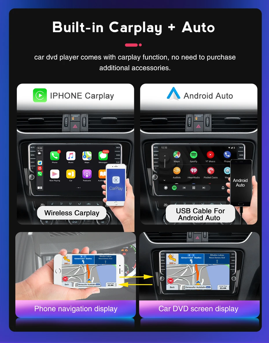 Автомагнитола CarPlay Auto, мультимедийный GPS-навигатор, Android 1...