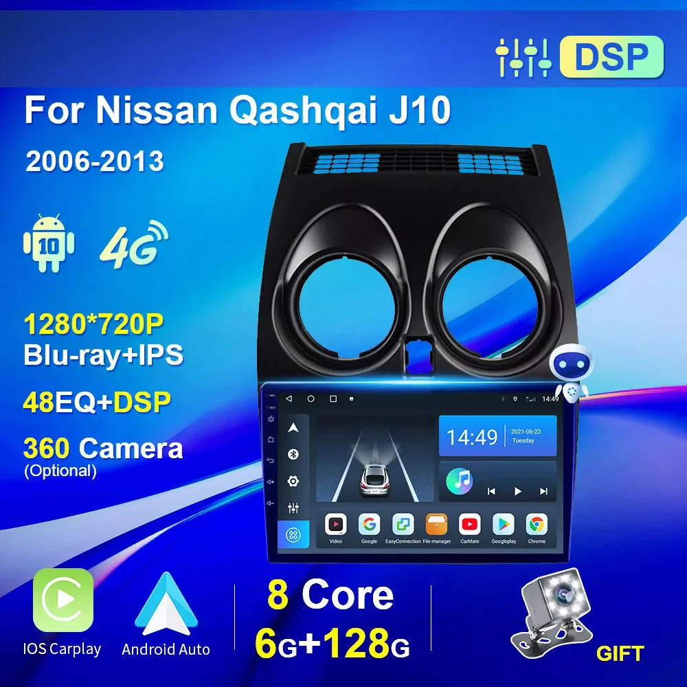 Авторадио Стерео видеоплеер 2 din Android авто для Nissan Qashqai J10 2006-2013 умный автомобильный радиоприемник Blu-Ray экран Carplay DSP GPS