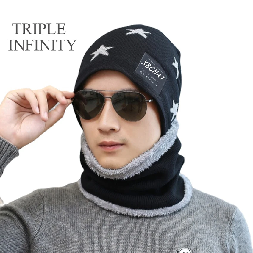 Зимняя мужская шапка с тройным знаком бесконечности, теплый костюм,...