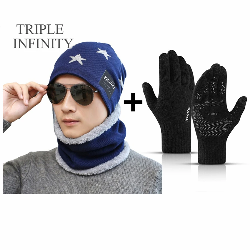 Зимние стандартные теплые мужские шапки TRIPLE INFINITY, толстые мя...