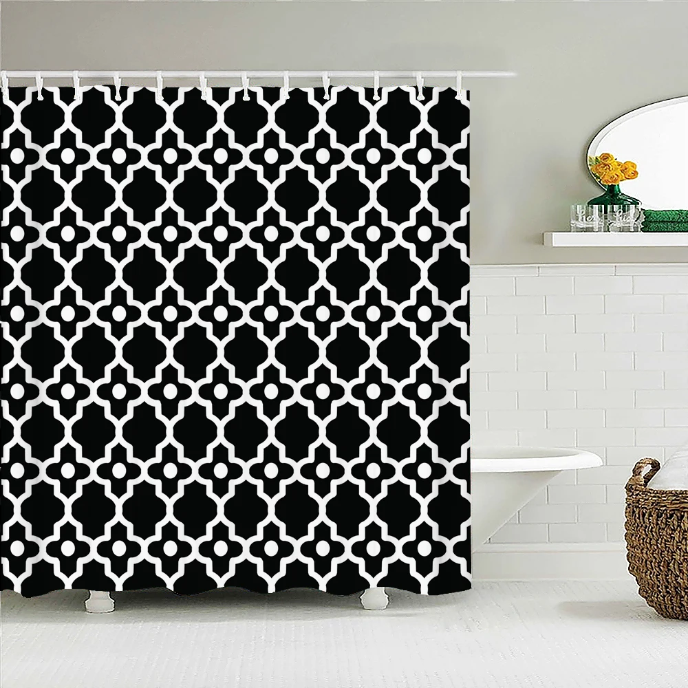 Геометрическая занавеска для душа черного и белого цвета, водонепро...