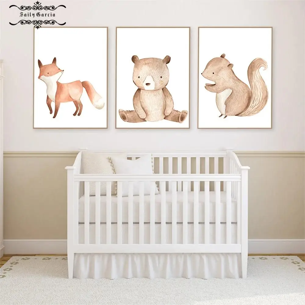 Настенная картина для детской комнаты, постер на холсте с изображением лесных животных, кролика, лисы, Мультяшные картины для интерьера комнаты, декор для детской комнаты