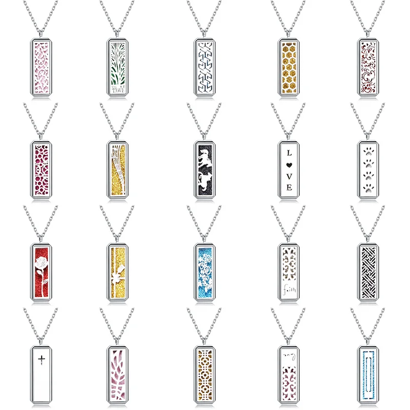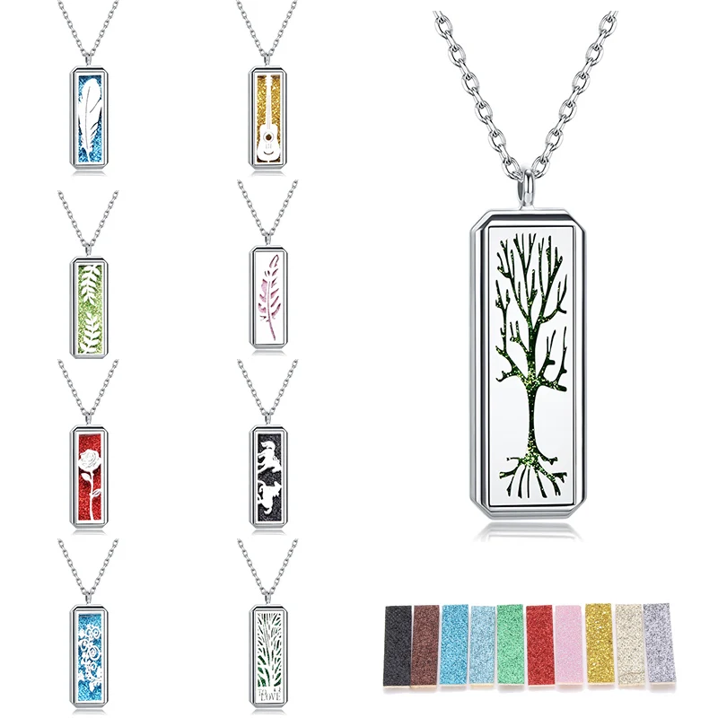 Новинка, многоразовый прямоугольный диффузор для эфирного масла, ожерелье, ювелирные изделия, духи из нержавеющей стали, открытый медальон, подарок