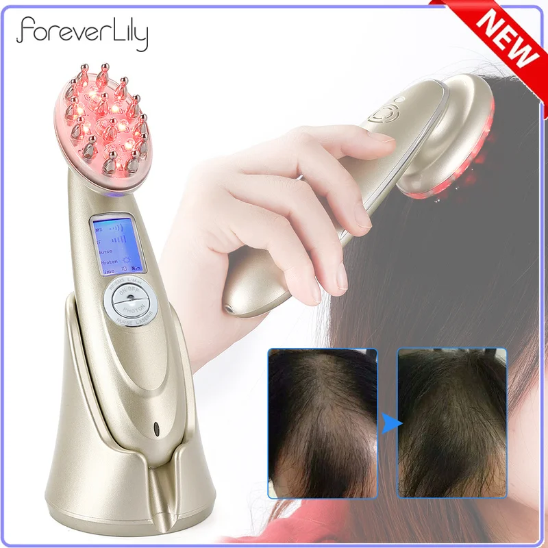 Массажная щетка для волос RF EMS Nano светодиодный с крассветильник Том, электрическая лазерная расческа для роста волос, терапия против выпадения волос, инфракрасная