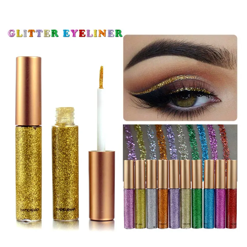 Блестящая жидкая подводка для глаз, Водостойкая Подводка для глаз для макияжа, блестящие тени для век с металлическим блеском, пигмент