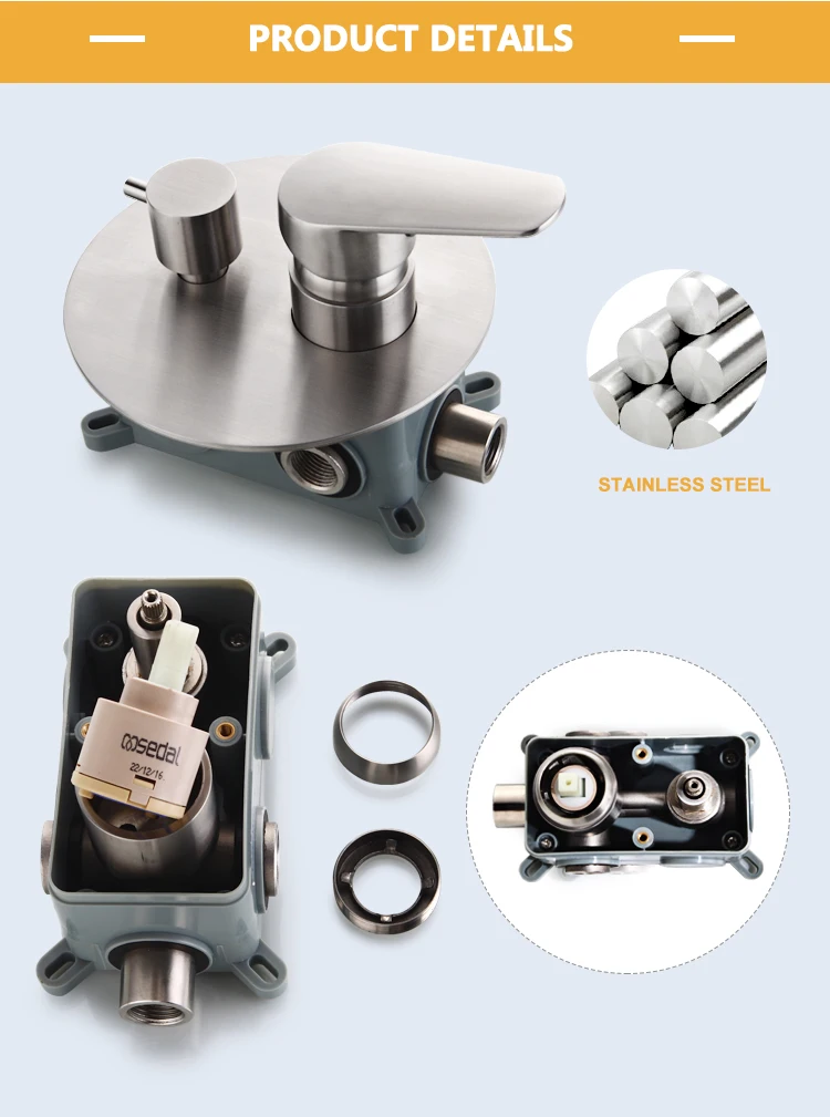 Особенности и характеристики:Двойной функциональный смеситель для душа/Душевая системаИспользование: ванная комната/душевая комната/туалетМатериал: нержавеющая сталь SUS 304Цвет: матовыйУстановка: НастенныйОсобенность: Скрытая установкаВключая все монтажные фитинги