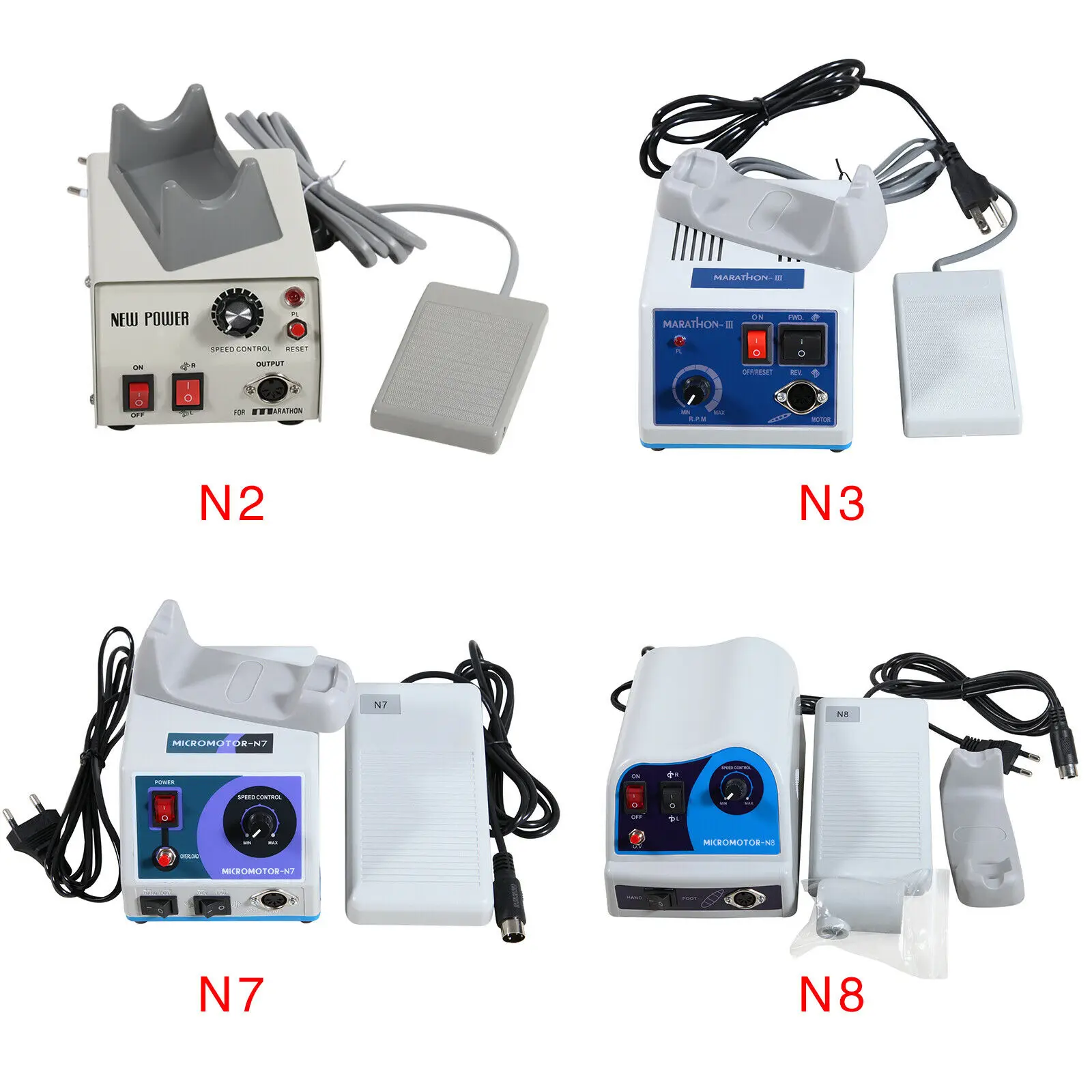 1. Micromotor marathon machine-это инструмент, изготовленный с двигателем для использования, как карандаш, и используемый для работы с поворотным усилием от вращающегося двигателя до 45000 об/мин. И применяется для резки, шлифования, полировки. Доступны различные боры в зависимости от материала и способа работы. Продукты в основном используются для стоматологической лаборатории и стоматологической клинике. Диапазон использования был постепенно расширен для ювелирных изделий, ногтей, гравировки, ортопедии, промышленного рынка, красоты резьбы по дереву, резьба по яичной скорлупе и т. Д.