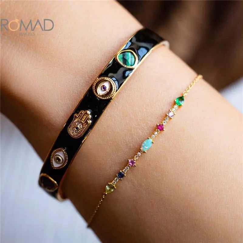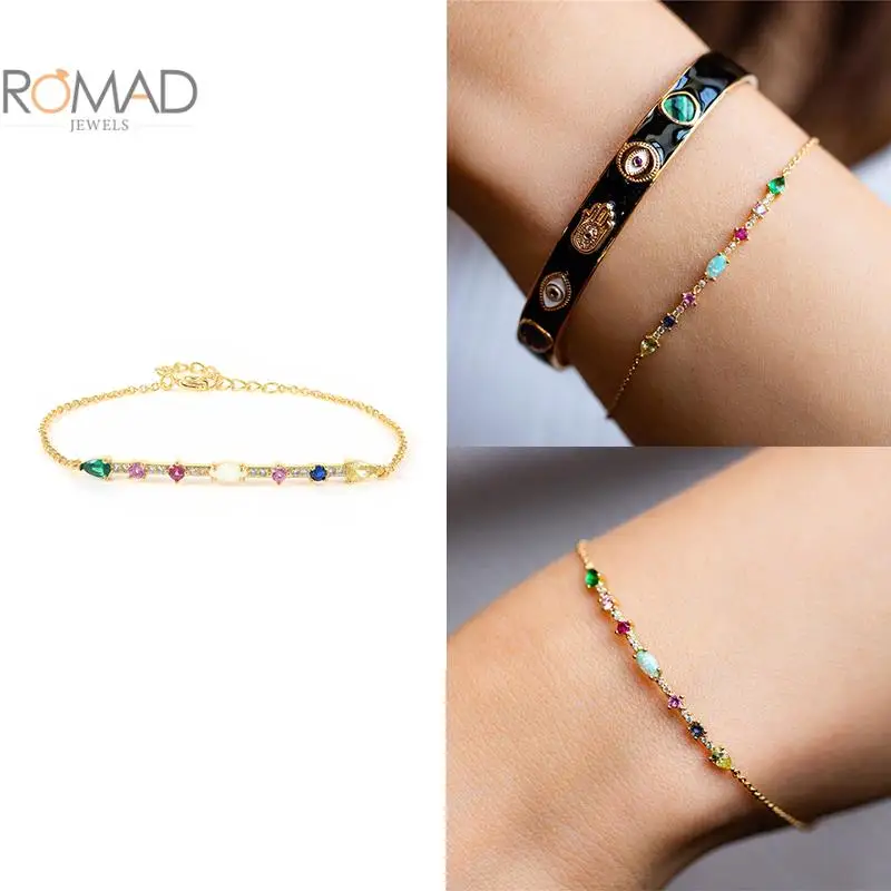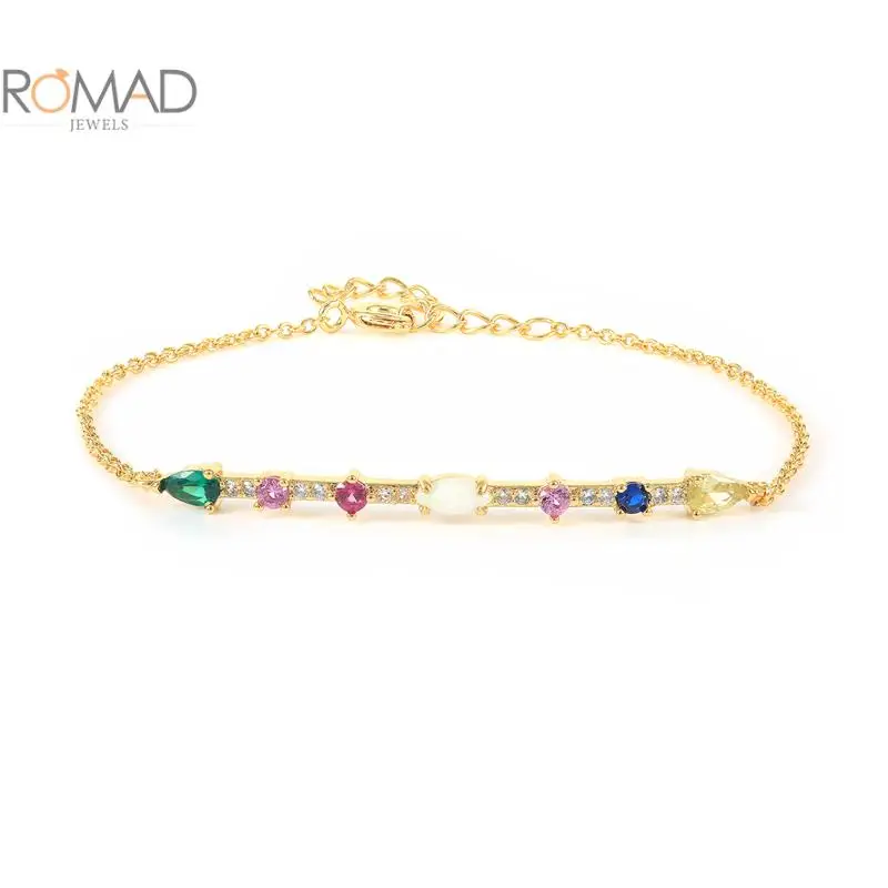 ROMAD Модный Цветной яркий браслет для женщин Изысканный Цвет циркон популярный универсальный браслет золотой модные ювелирные изделия Pulseras