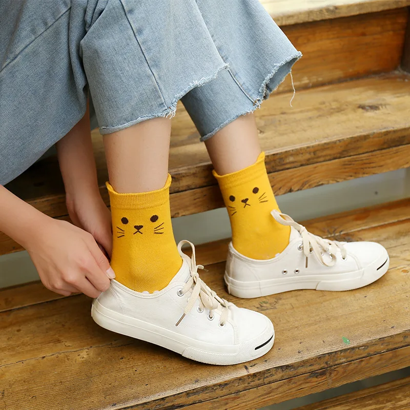 Носки женские в стиле Харадзюку, хлопок, цвет в ассортименте, 5-10 пар