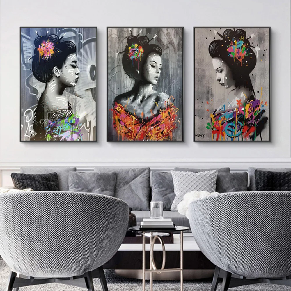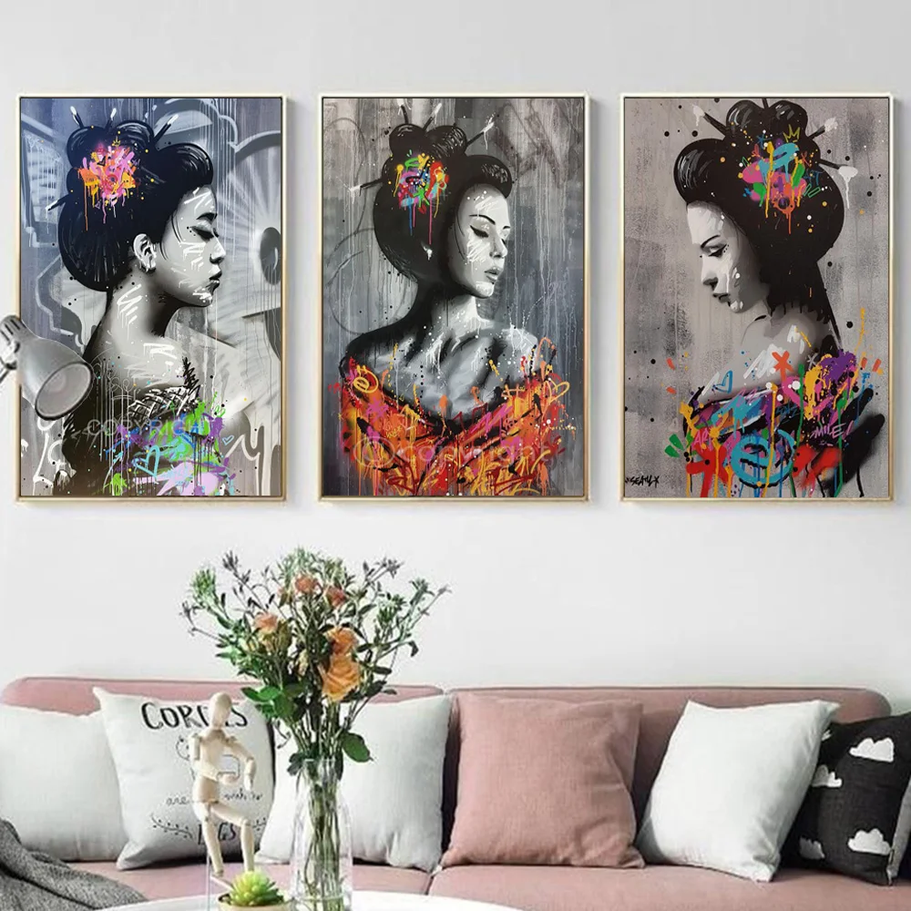 Абстрактный граффити, японский красивый постер гейши, Картина на холсте, художественные принты, акварельные декоративные картины для домашней комнаты