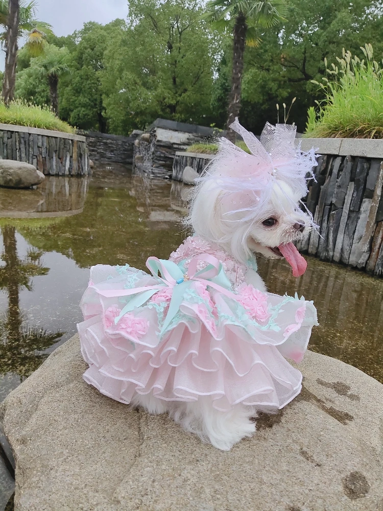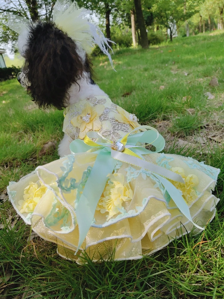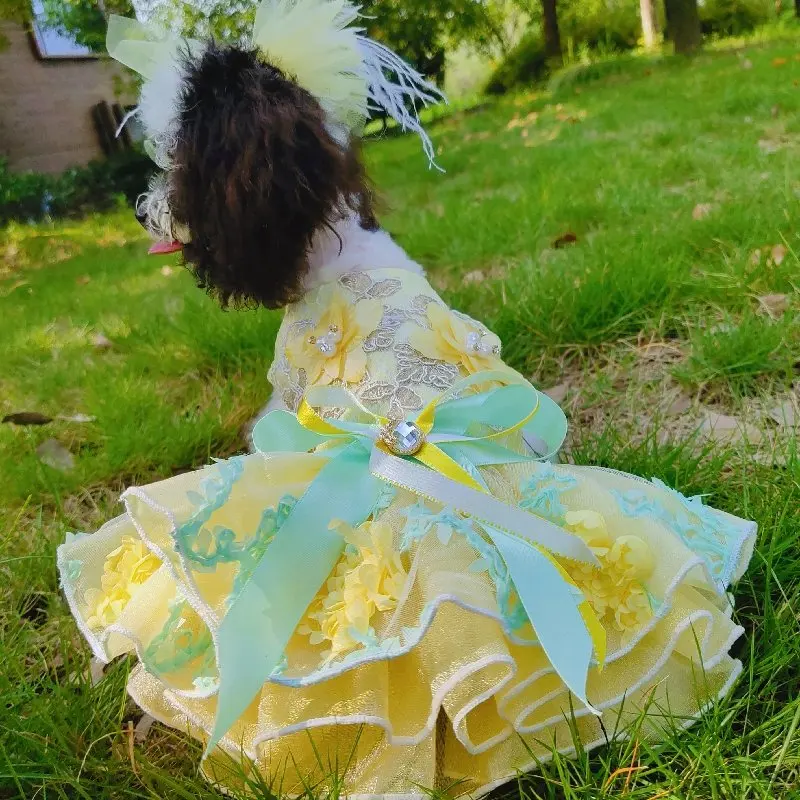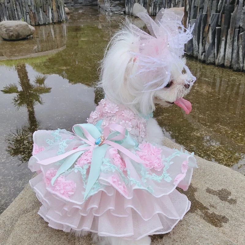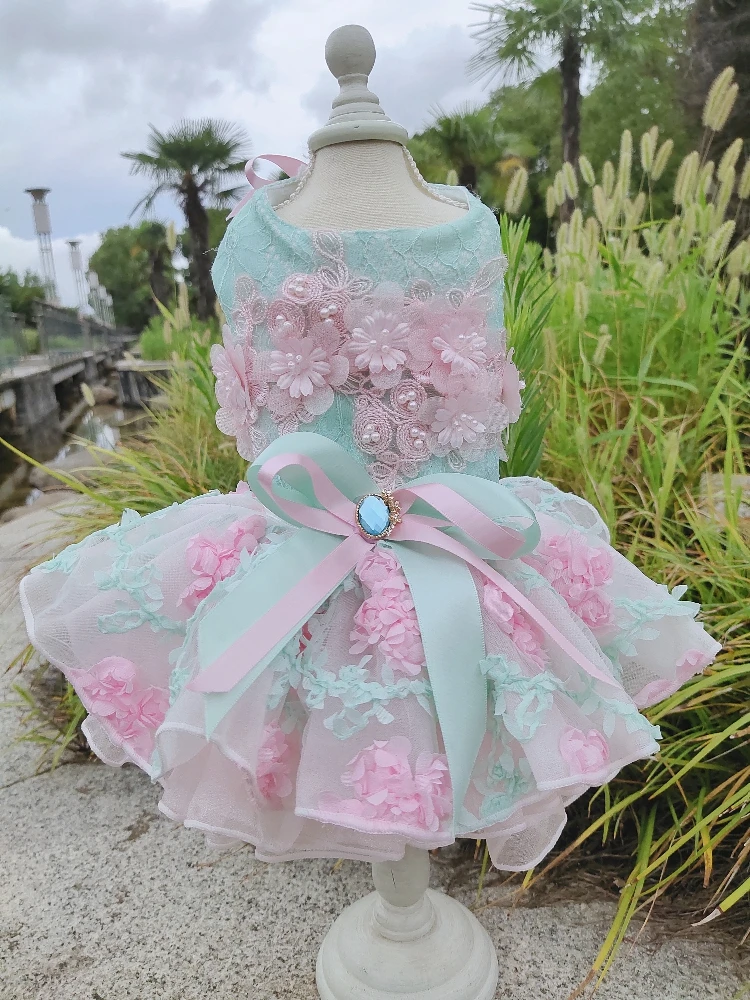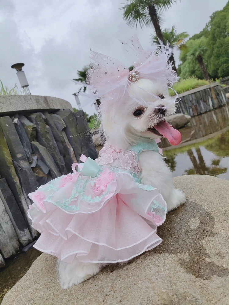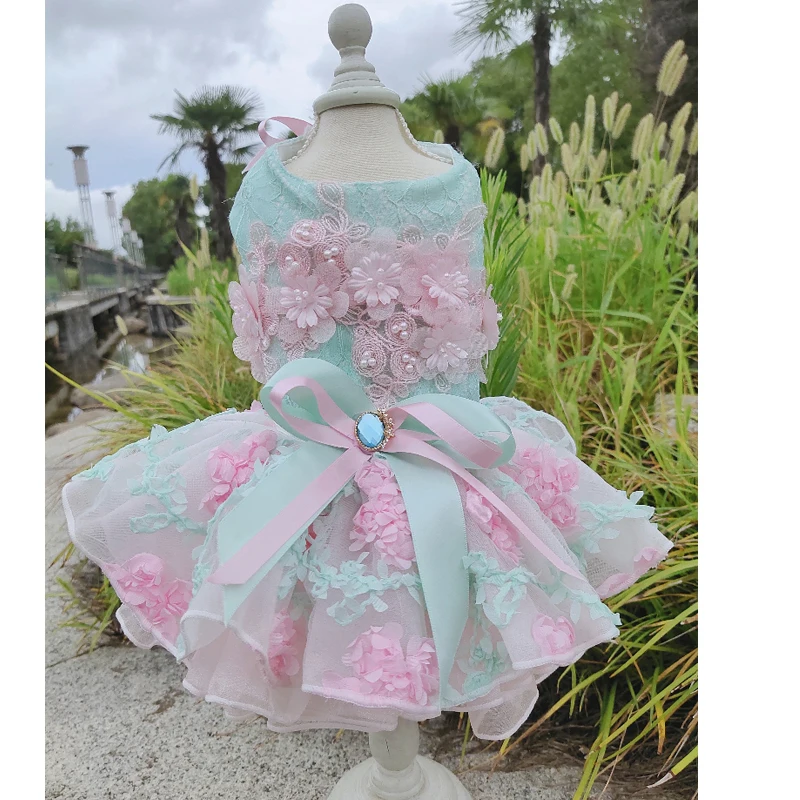 Летние модные платья для щенков; Кружевное свадебное платье-пачка ручной работы с цветами и бантом для маленьких собак; Одежда для домашних животных; Пальто; Костюмы пуделя