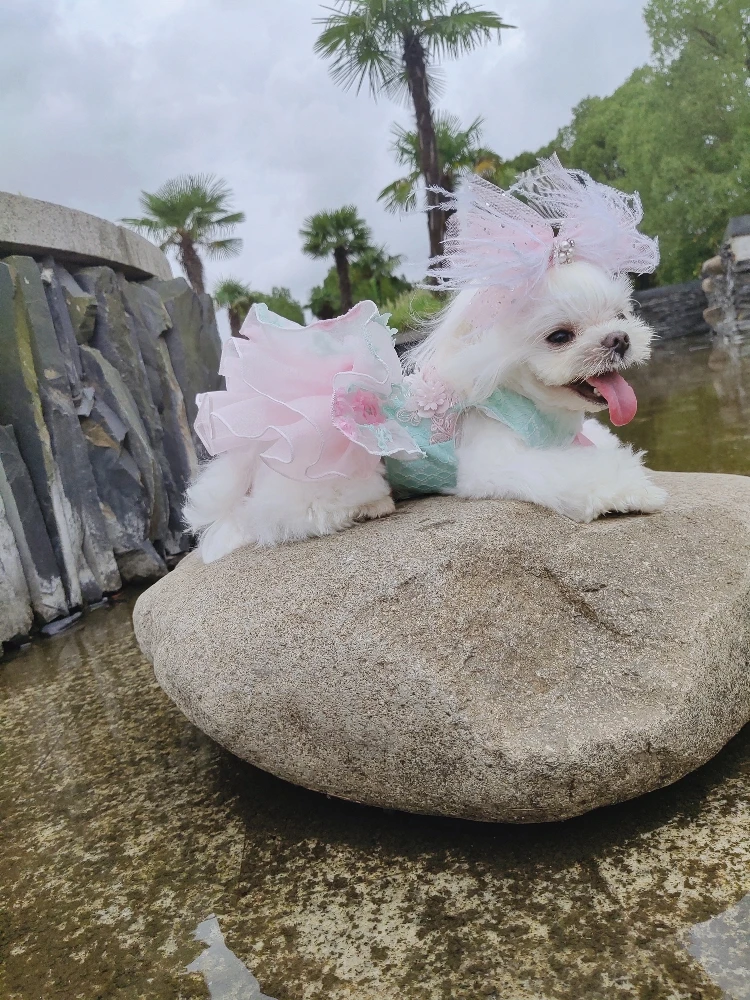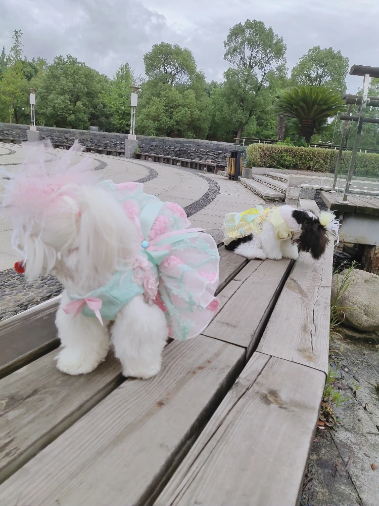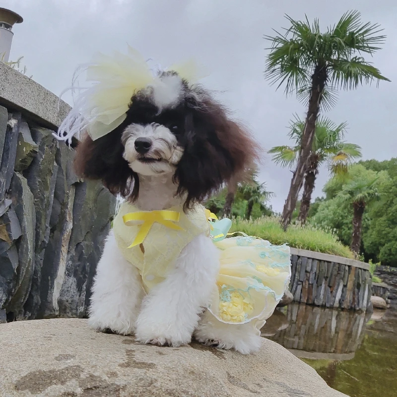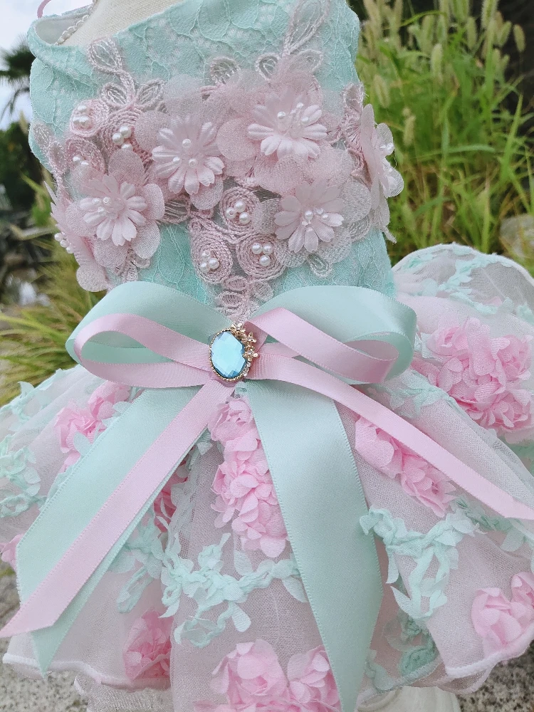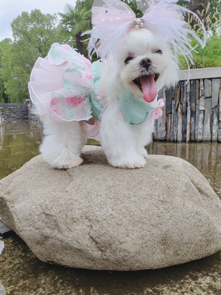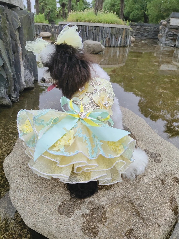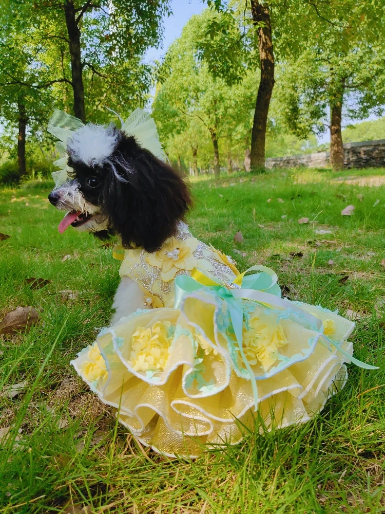 Летние модные платья для щенков; Кружевное свадебное платье-пачка ручной работы с цветами и бантом для маленьких собак; Одежда для домашних животных; Пальто; Костюмы пуделя