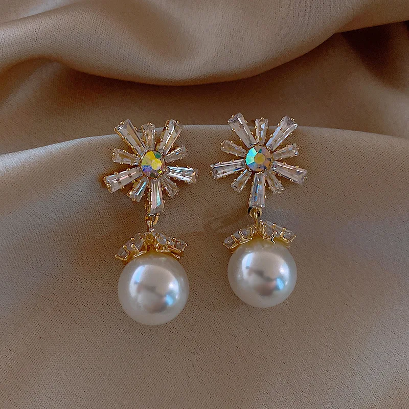 2021 Модные женские серьги-подвески, маленькие цветы, снежинка, циркониевые серьги, ювелирные изделия для вечеринки, свадьбы, помолвки