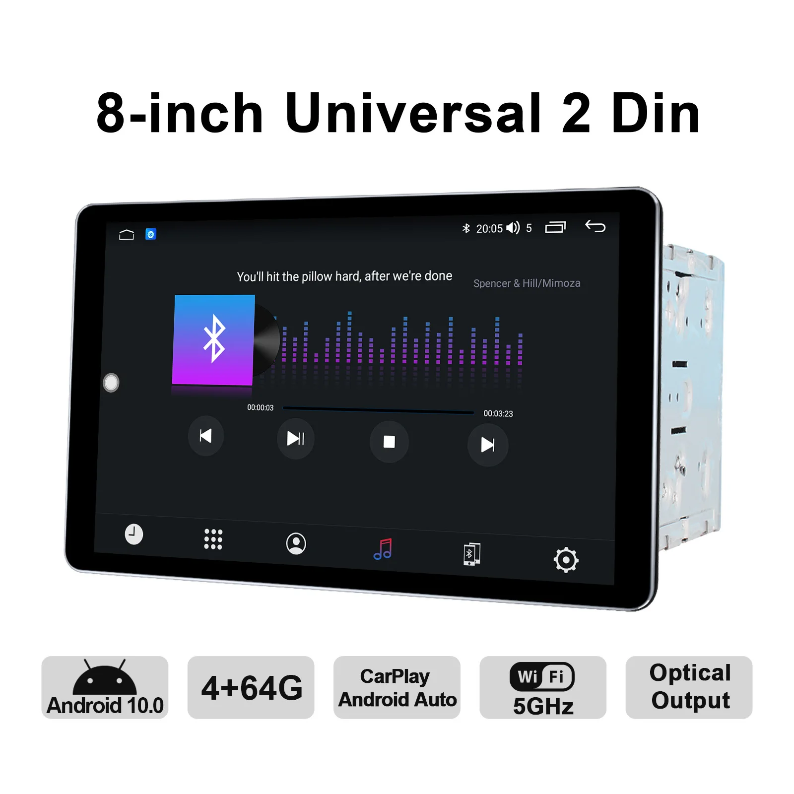 Авторадио, универсальное 8-дюймовое головное устройство Android 10, автомобильное радио, стерео, HD 1280*800, мультимедийный плеер, поддержка беспроводной Carplay, новый пользовательский интерфейс