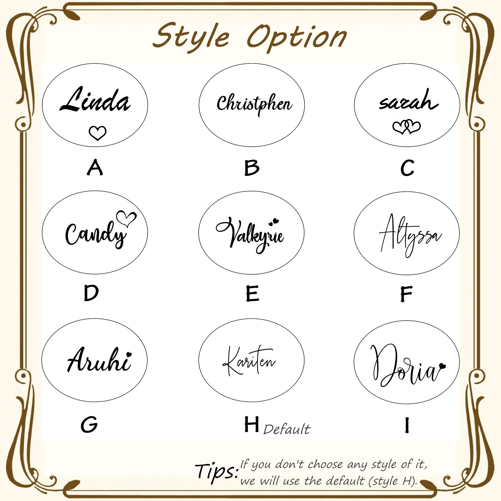 (Если вы не указываете стиль шрифта, который вы хотите, вы получите продукт с шрифтом по умолчанию.)***Если вам нужен специальный дизайн, пожалуйста, свяжитесь со мной перед заказом***Например-Название: АлиссаШрифт: стиль 1Цвет шрифта: черный(Отправьте индивидуальный контент через колонку примечаний продавцов на странице заказа или свяжитесь напрямую с онлайн-службой поддержки клиентов.Если Заказная информация не будет отправлена вовремя в течение 1 дня, мы будем использовать стиль по умолчанию.)