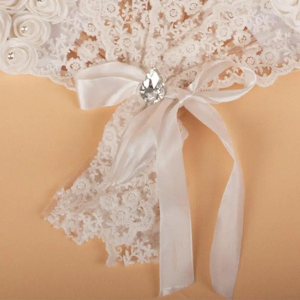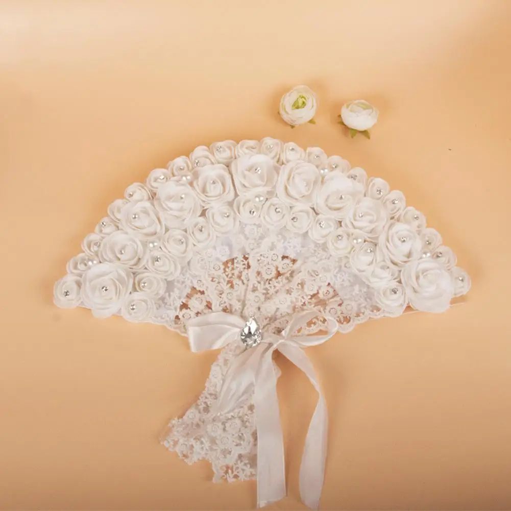 Свадебный веер с перьями, Элегантный Ручной Веер невесты с кружевом, роза, не складывающийся реквизит для фотосъемки, свадебное украшение