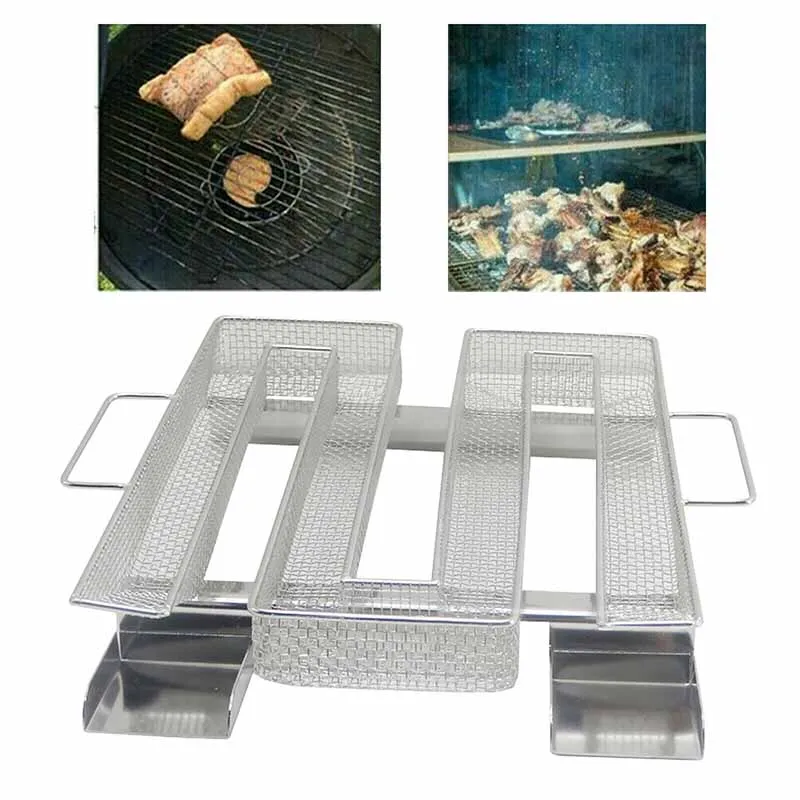 Корзина для коптильни из нержавеющей стали, аксессуары для барбекю, гриль, инструмент для приготовления пищи, лосось, бекон, рыба, деревянная стружка, генератор, коробка