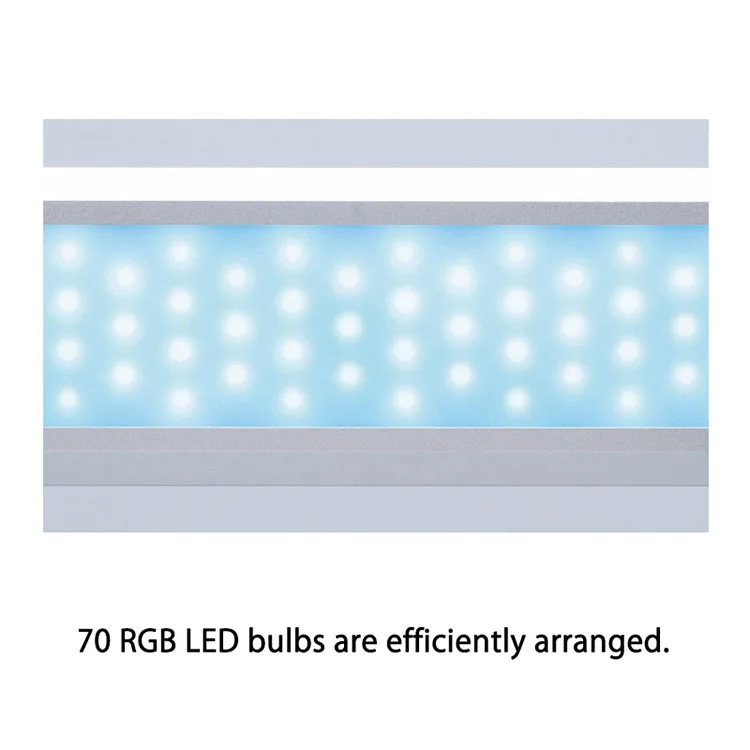 Мощный RGB · светодиодный светильникНа этот раз на лампе используется Мощный светодиодный светильник RGBУстановив R (красный), G (зеленый) и B (синий), длины волны трех основных цветов этого светильникЭто больше подходит для ландшафтного дизайна водных растений, не только Водные растения растут здоровым образом, цвета яркие, а водный ландшафт также более красивый