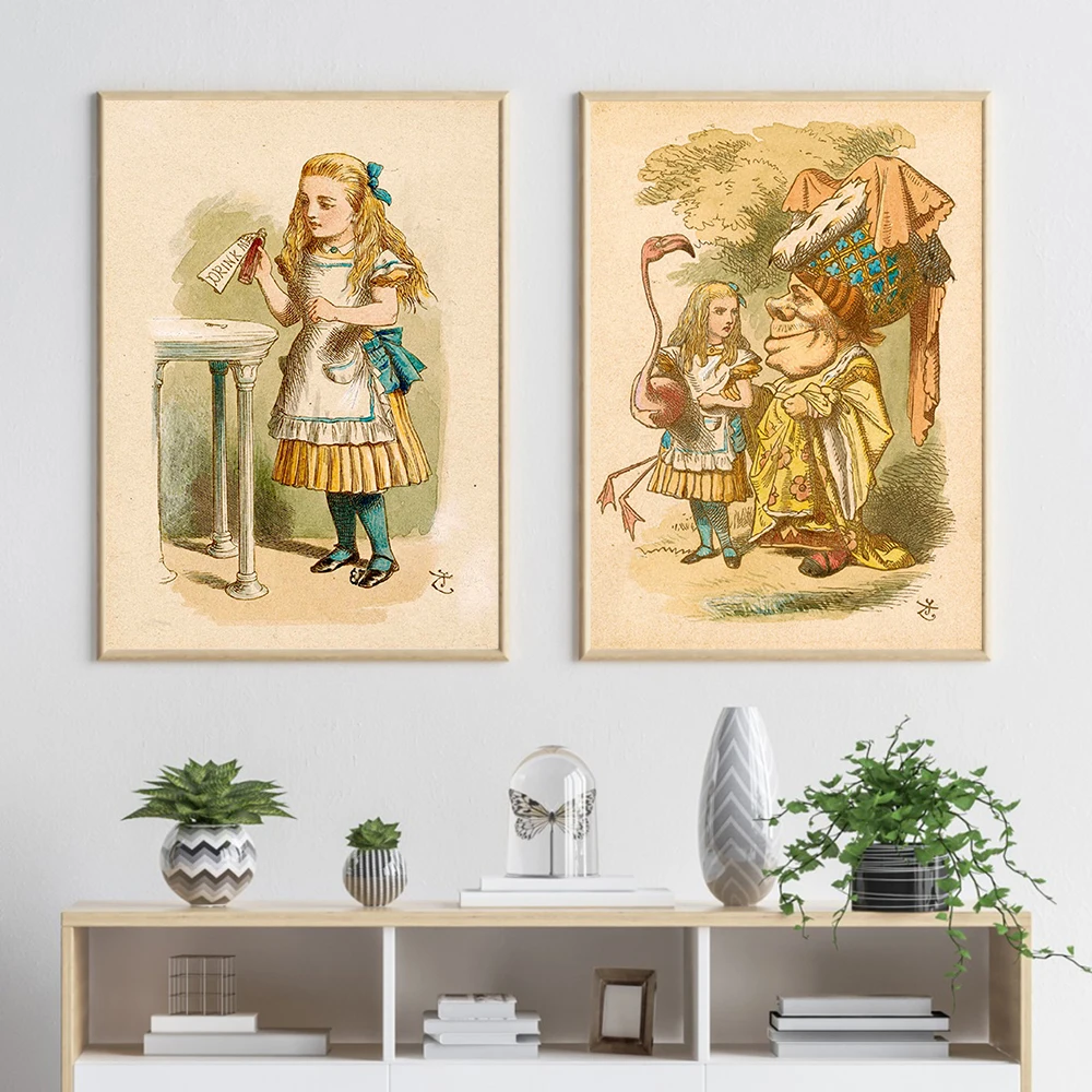 Настенный Ретро плакат Алиса в стране чудес, винтажная живопись на ...