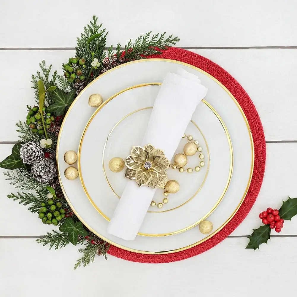Кольца для салфеток с ажурным цветком для ужина, дней рождения, свадеб, семейных торжеств, Рождественский Декор для стола