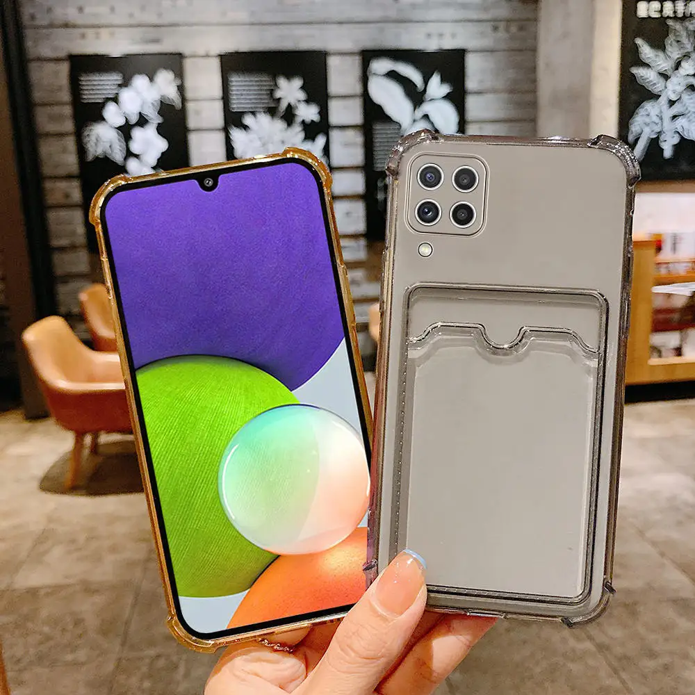 Чехол для Samsung Galaxy A22 4G, прозрачный противоударный кошелек, мягкая задняя крышка для карт, чехол для Samsun A 22 6,4 дюйма, Защитные чехлы для камеры A225F