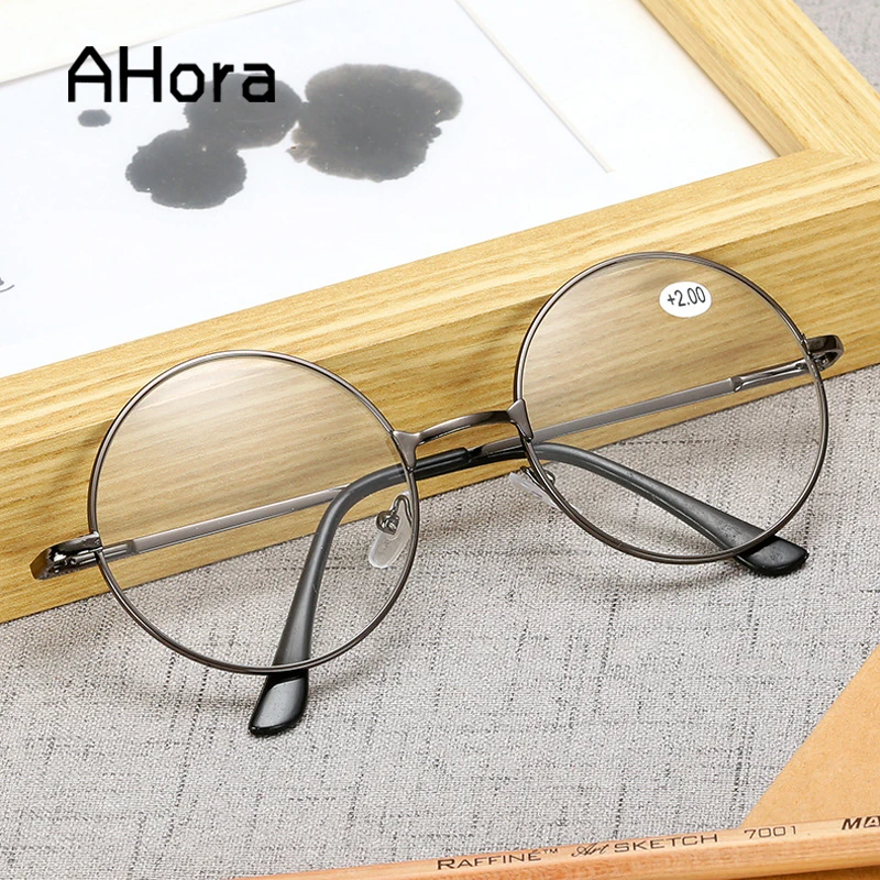 Очки для чтения унисекс Ahora, металлическая круглая оправа, прозрачные линзы для коррекции дальнозоркости, + 1,0, 1,5, 2,0, 2,5, 3,0