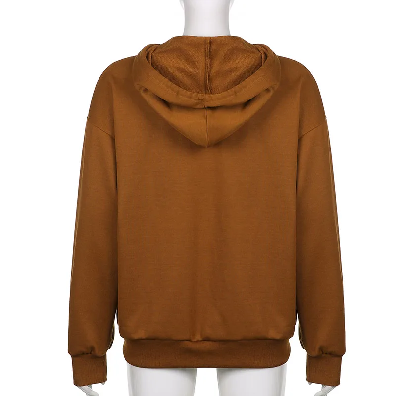 zip upOversized Long Sleeve Zipper Pocket Hooded Coats Jackets