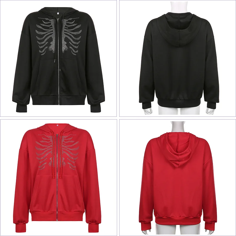Autumn WinterSkeleton Goth Dark Black Hippie Hoodies