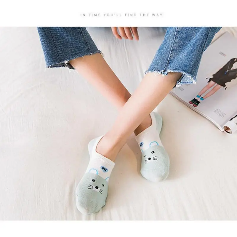 Женские лодочные носки набор из 5 корейских носков с животными, неглубокие носки с низким вырезом, незаметные носки, повседневные женские забавные носки до щиколотки