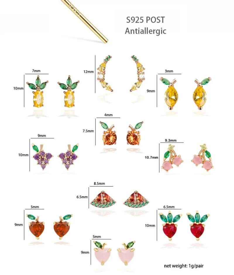 Ins Лидер продаж 14K позолоченные милые серьги-гвоздики в форме фру...