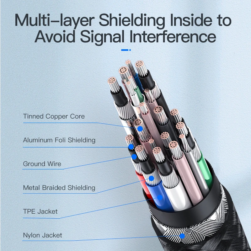 Материал: корпус из цинкового сплава + ТПЭ + высоконейлоновая оплетка