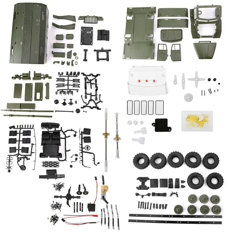 67JC WPL B36 1:16 Радиоуправляемый автомобиль 2,4G 6WD военный грузовик рок-гусеничный командный автомобиль комплект для самостоятельной связи игрушки для мальчиковОписание:100% новый и высококачественныйОсобенности:Этот набор необходимо собрать самостоятельно, он содержит компоненты и детали для сборки автомобиля,А также включает рулевой механизм, мягкие шины, металлическую раму и металлический двигатель 180.Не включает Пульт дистанционного управления, приемник, аккумулятор, зарядное устройство и ESC.Характеристики:Пропорция: 1:16Тип привода: 6 WDМатериал: пластик + металлЦвет: армейский зеленыйКоличество: 1 комплектПримечание:Переход: 1 см = 10 мм = 0,39 дюймаНет розничной упаковки.Допускается погрешность в 1-2 см из-за ручного измерения. Пожалуйста, убедитесь, что вы не против, прежде чем сделать заказ.Из-за разницы между различными мониторами изображение может не отражать реальный цвет изделия. Спасибо!Посылка входит:1 Набор автомобильных игрушек (другие демонстрационные аксессуары на картинке в комплект не входят.)