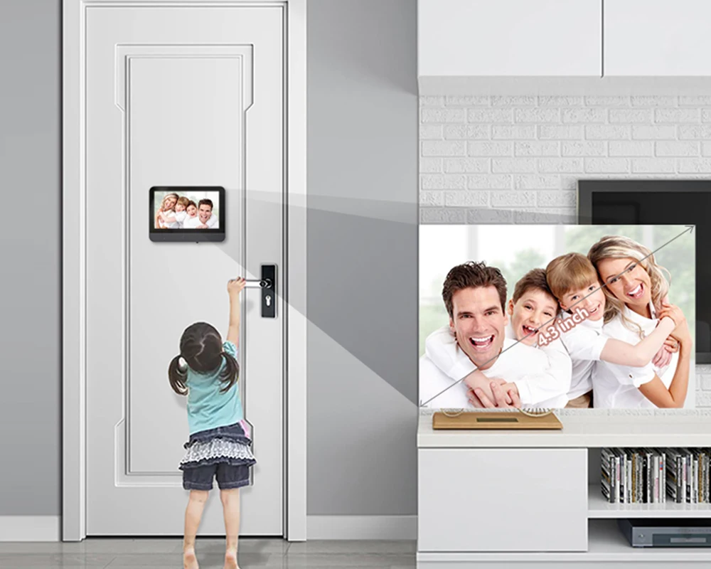 Когда кто-то нажимает дверной звонок, вы можете смотреть снаружи через внутренний экран дисплея. Безопаснее, чтобы дети не открывали дверь посторонним людям.