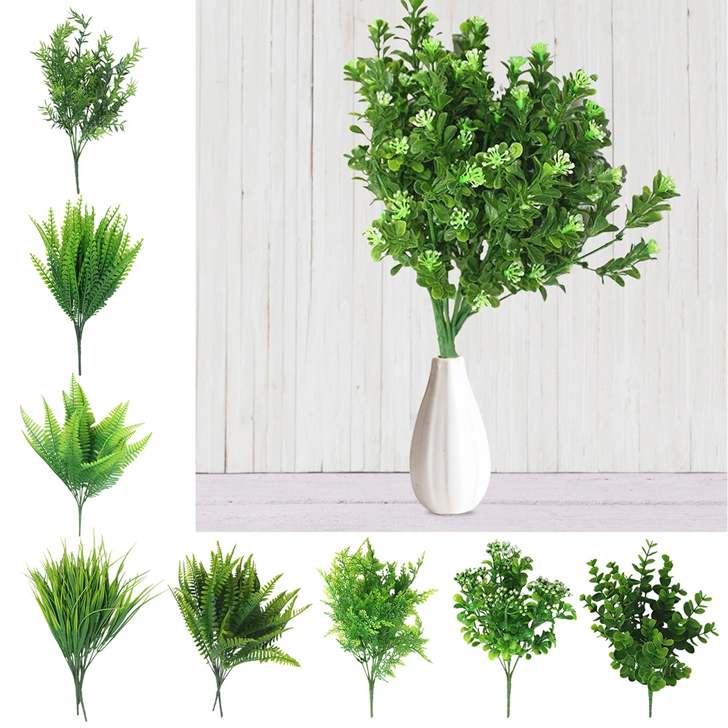 7 вилок, искусственные растения, эвкалиптовая трава, пластиковые папоротники, зеленые листья, искусственный цветок растение, Свадебные Декорации для дома, настольные декорации