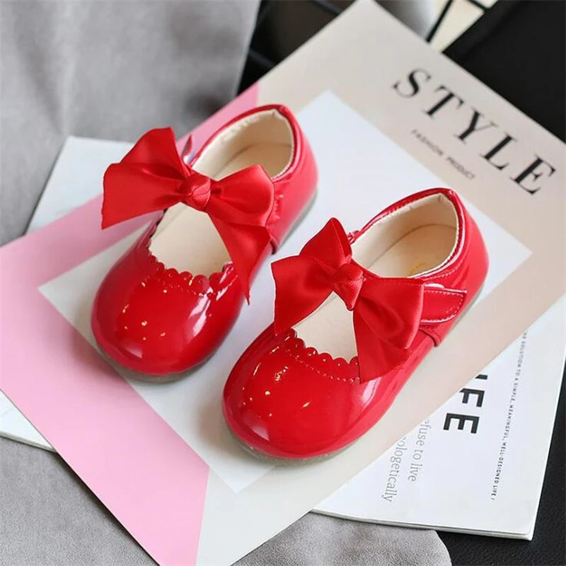 Туфли Детские демисезонные из лакированной кожи, с бантом, однотонные