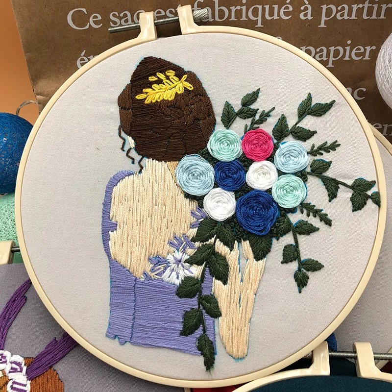 Наборы для вышивания для девочек-начинающих и с цветами, круглая шв...