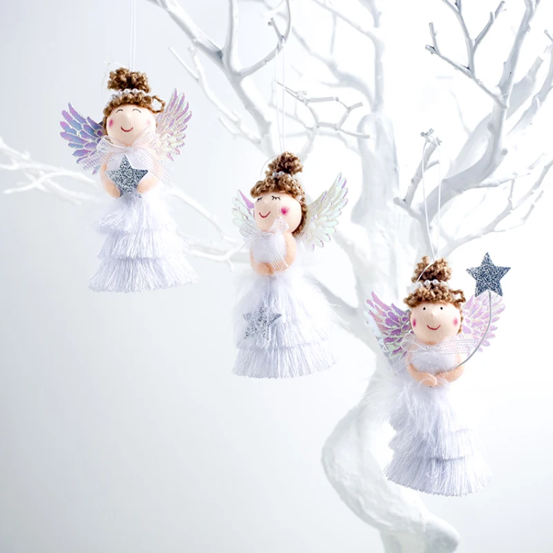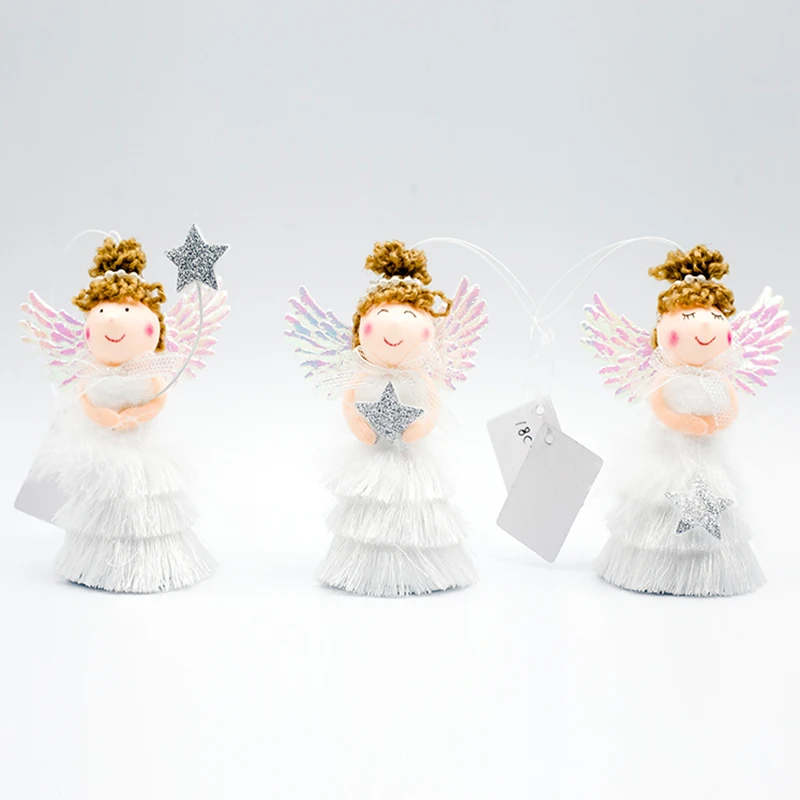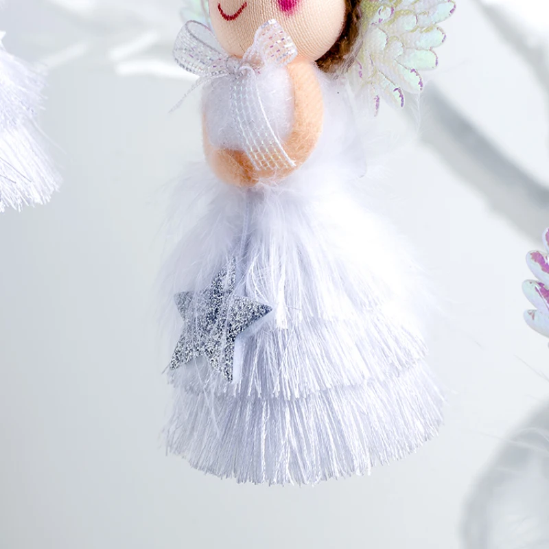 Рождественские украшения, Рождественский ангел, тканевая юбка с бахромой, Рождественская кукла для девочки, подвеска, рождественские украшения, подвесные украшения