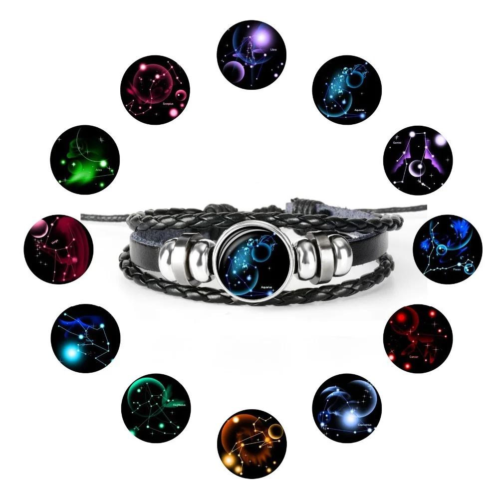 12 шт.компл. 12 созвездий светящиеся кожаные браслеты ручной работы...