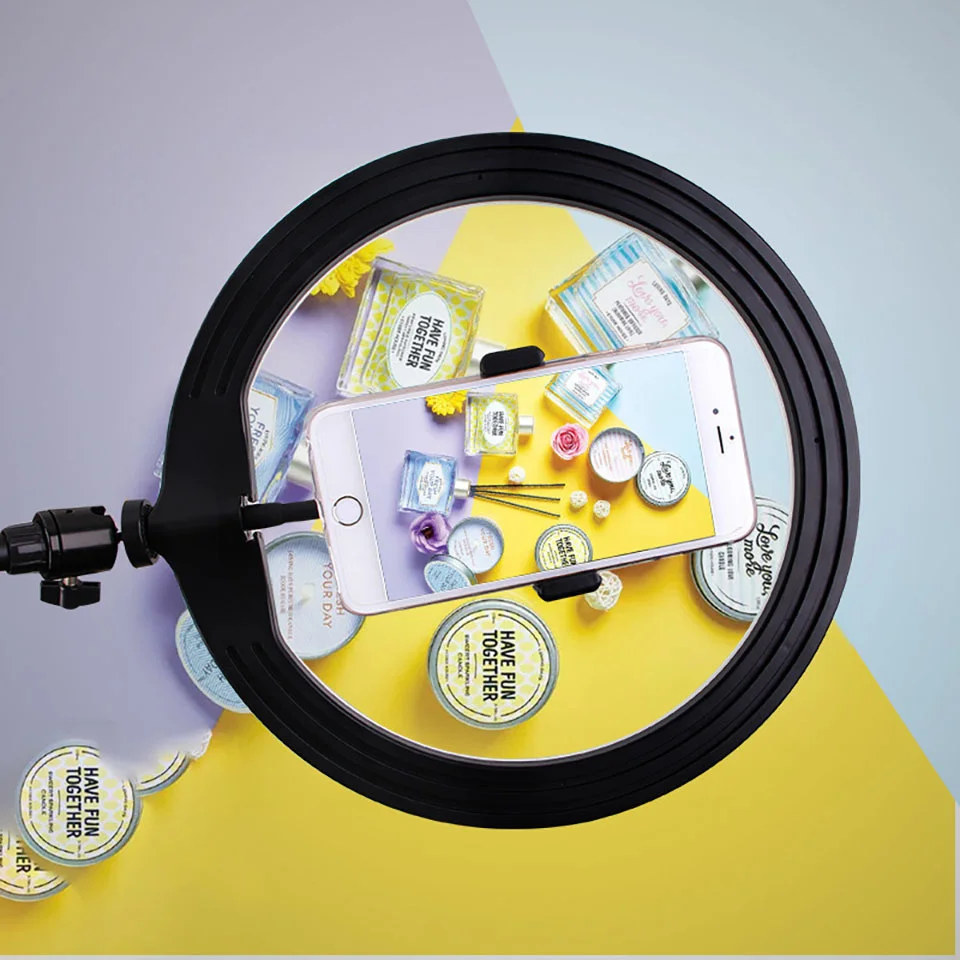 Кольцевой светодиодный светильник для видеосъемки, лампа со штативом и держателем для телефона, подходит для съемки фото и видео в фотостудии